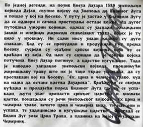 · Ako ovom verodostojnom zapisu dodamo predanje o tome da se u crnotravskom kraju bila utaborila srpska vojska, koja je bila zakasnila za boj na Kosovu, onda legenda koja se u ovom kraju, zajedno sa pesmama ,,Musić Stefan” i